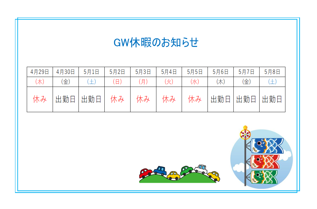 富士電子工業 G.W.休暇のお知らせ