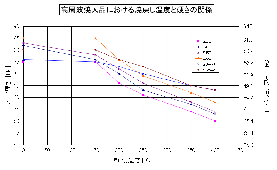 焼き戻し温度と硬さの関係 高周波焼入れ